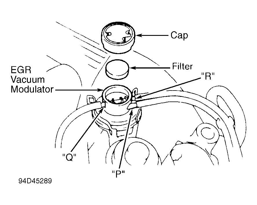 EGR Vacuum Modulator (Except Calif.) Forward of EGR valve. See Figure.