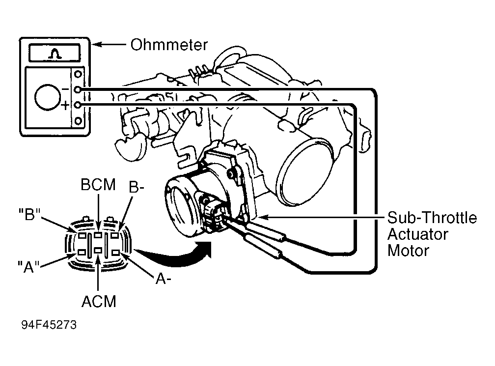 Sub-Throttle Actuator Motor (With TRAC) On throttle body. See Figure.
