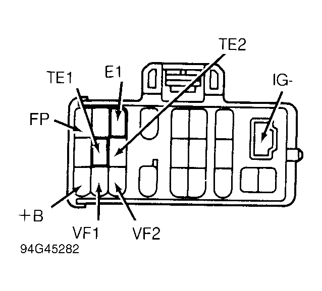 Connect tachometer between chassis ground and terminal IG- of DLC No. 1. See Figure. See COMPONENT LOCATIONS .