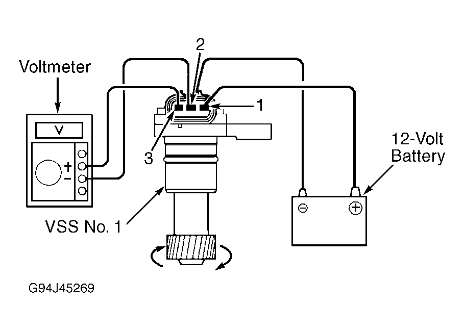 Vehicle Speed Sensor (VSS) No. 1 On right side of transmission (do not confuse with VSS No. 2 on left side). See Figure.