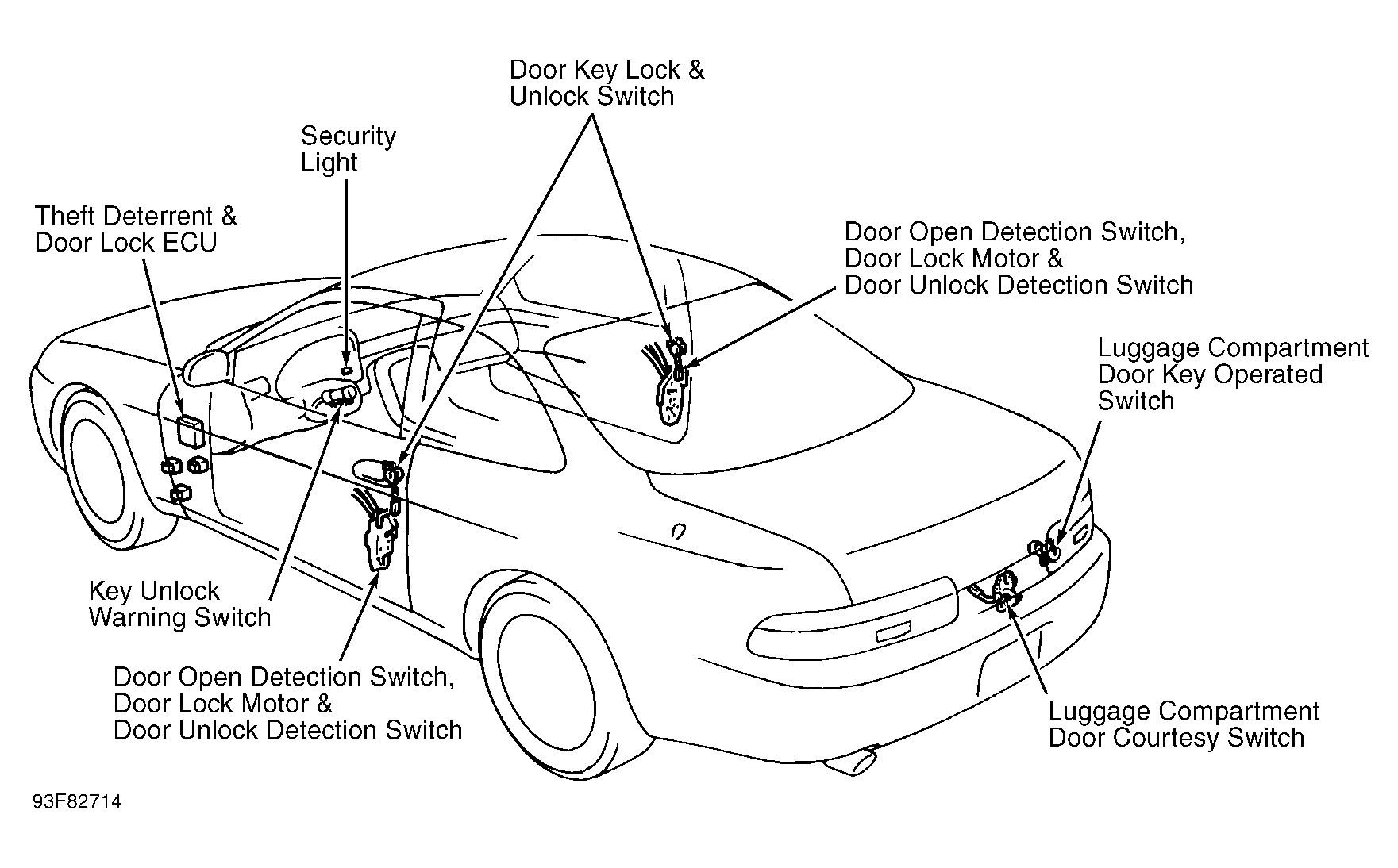If one of the following conditions occurs when the theft deterrent system is set (armed), the system disables the starter, locks all the doors, flashes the headlights and taillights, and sounds an alarm. See Fig 1 and Fig 2 .