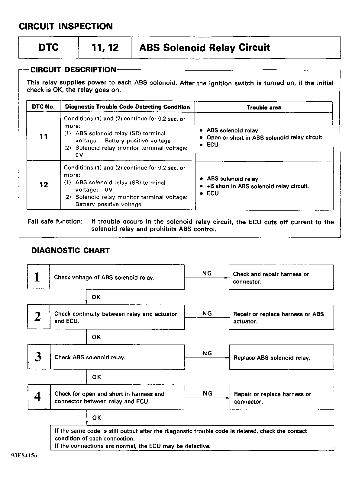 - Apply battery voltage between ABS solenoid relay terminals No. 4 and 6. See Figure. Continuity should not be present between ABS solenoid relay terminals No. 2 and 3. Continuity should be present between ABS solenoid relay terminals No. 1 and 3. See Figure. If readings are not as specified, replace ABS solenoid relay.