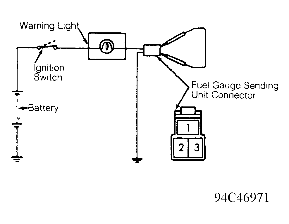 4. Turn ignition on. If warning light comes on, replace fuel level warning light switch (integral part of sending unit). If warning light does not come on, repair circuit between instrument cluster and sending unit.