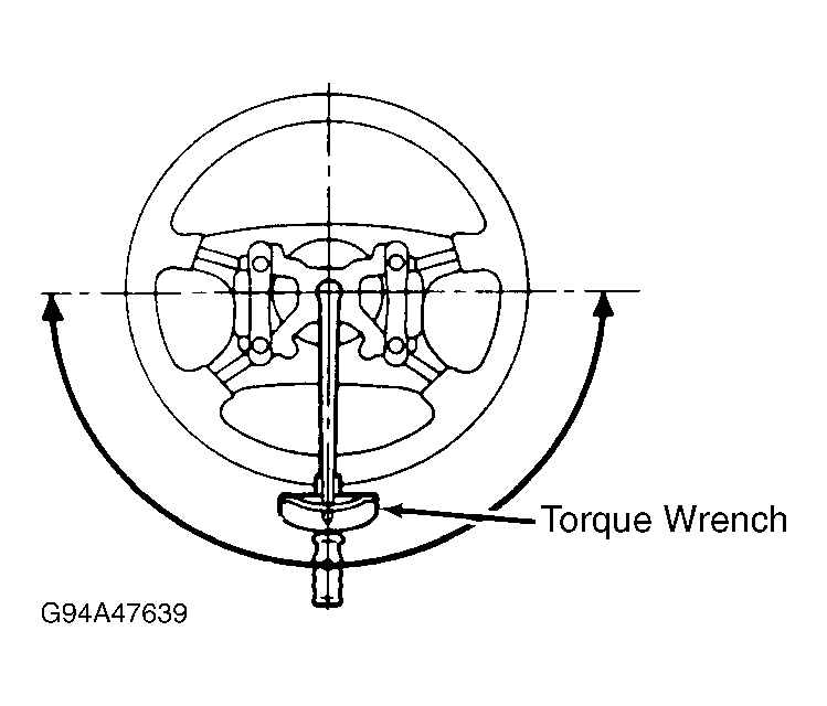 - Center steering wheel. Remove steering wheel horn pad. See STEERING WHEEL & HORN PAD in STEERING COLUMN article in the STEERING section. Attach torque wrench to steering wheel nut. See Fig 1. Measure turning effort in both directions. Maximum steering effort should not exceed specification. See STEERING WHEEL TURNING FORCE .