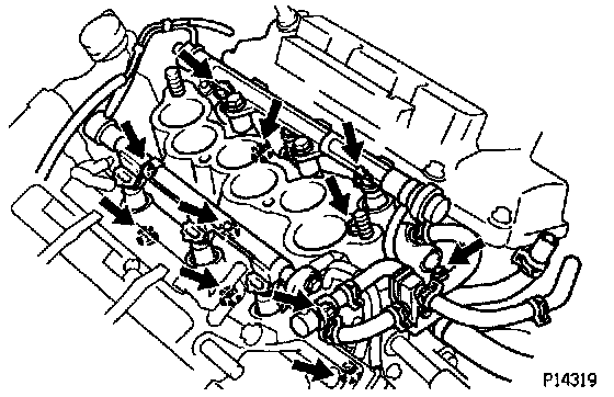 2. REINSTALL WATER OUTLET AND RH ENGINE MOUNTING STAY