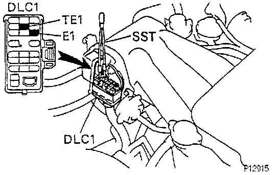 - Using a jumper wire or SST, connect terminals TE1 and E1 of the DLC1. (SST 09843-18020)
