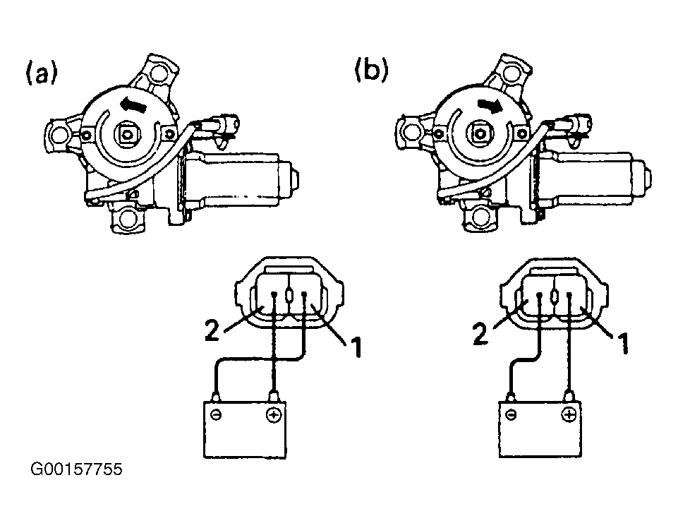 - Connect the positive (+) lead from the battery to terminal 2 and the negative (-) lead to terminal 1, and check that the motor turns counterclockwise. See Fig 1.