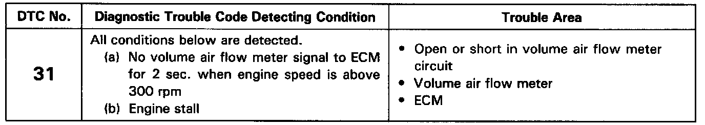 If the Engine Control Module (ECM) detects diagnostic trouble code "31", it operates the fail safe function, keeping the ignition timing and fuel injection volume constant and making it possible to drive the vehicle.DETECTING CONDITION