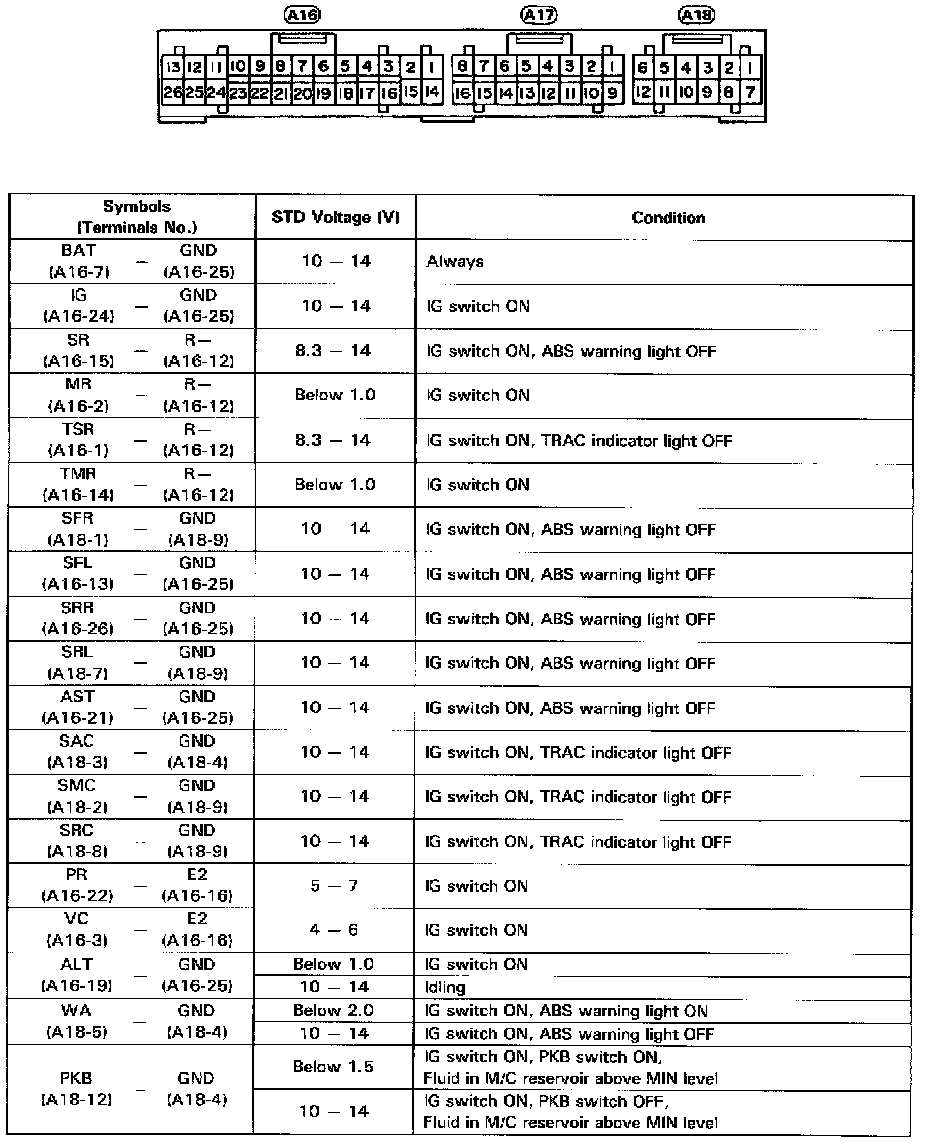 Fig. 25 ABS & TRAC ECU Terminal Values (Part 2 Of 2):