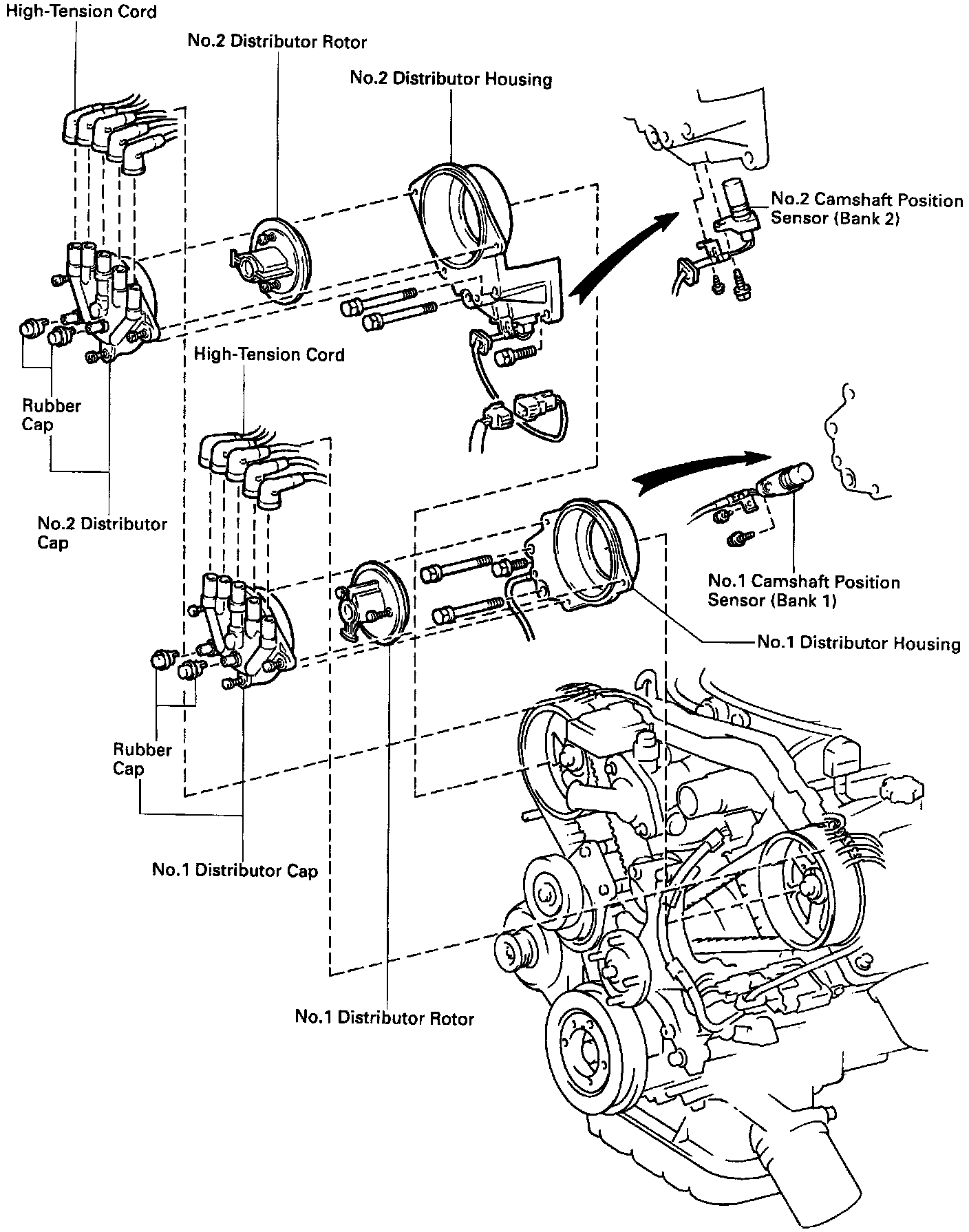 - No.2 distributor housing: Disconnect the camshaft position sensor connector.