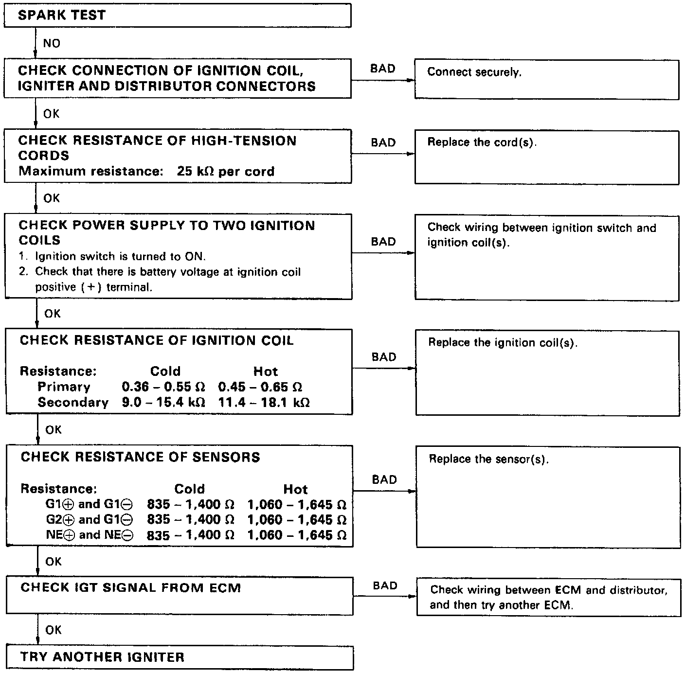 ^ If a spark does not occur, perform the following test.