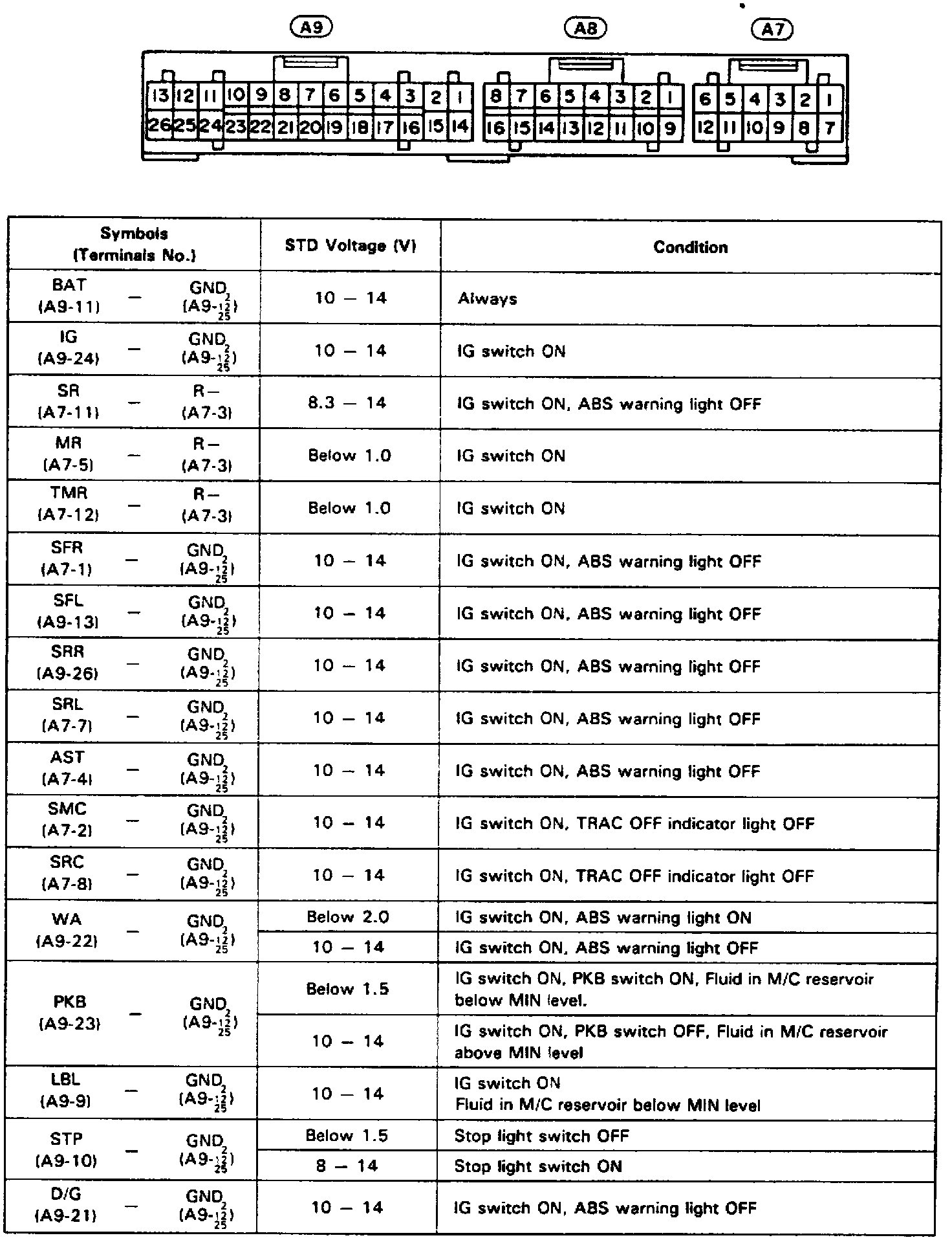 Fig. 34 ABS & TRAC ECU Terminal Identification & Values (Part 2 Of 2):