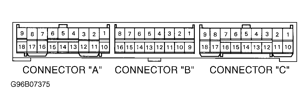 - Disconnect 18-pin connector "A" from front passenger's door ECU. See Figure. Check for continuity in Yellow wire between front passenger's door ECU connector "A" terminal No. 10 and tilt/telescopic ECU 22-pin connector terminal No. 11. If continuity does not exist, repair or replace wiring harness or connectors between front passenger's door ECU and tilt/telescopic ECU. If continuity exists, replace tilt/telescopic ECU.