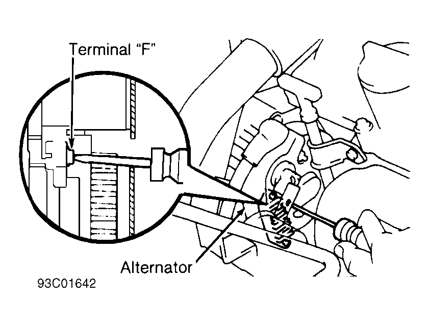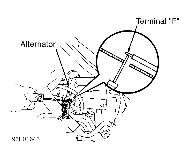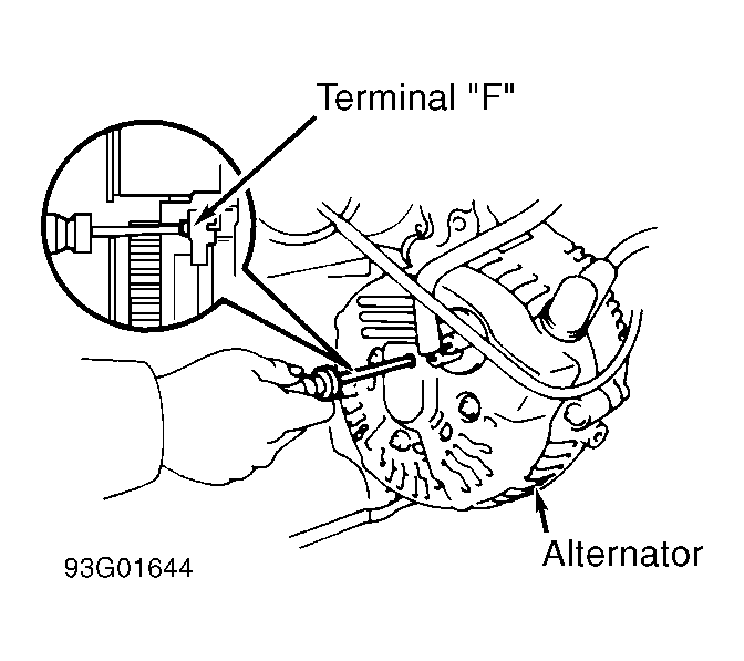 2. If output voltage is low, by-pass regulator (full field generator) by grounding terminal "F" at back of generator. See Fig 1, Fig 2 or Fig 3 . Recheck charging system output voltage. If voltage now exceeds output voltage specified in GENERATOR OUTPUT SPECIFICATIONS  table, replace regulator and recheck. If output voltage is still incorrect, repair or replace generator.