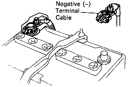 1. DISCONNECT NEGATIVE (-) TERMINAL CABLE FROM BATTERY.