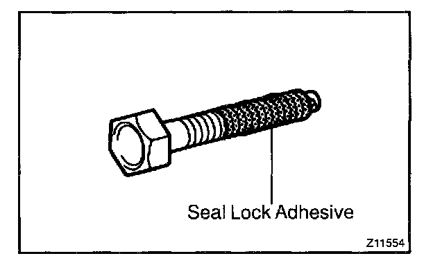 2. When reusing precoated parts, clean off the old adhesive and dry with compressed air. Then apply the specified seal lock adhesive to the bolt, nut or threads.