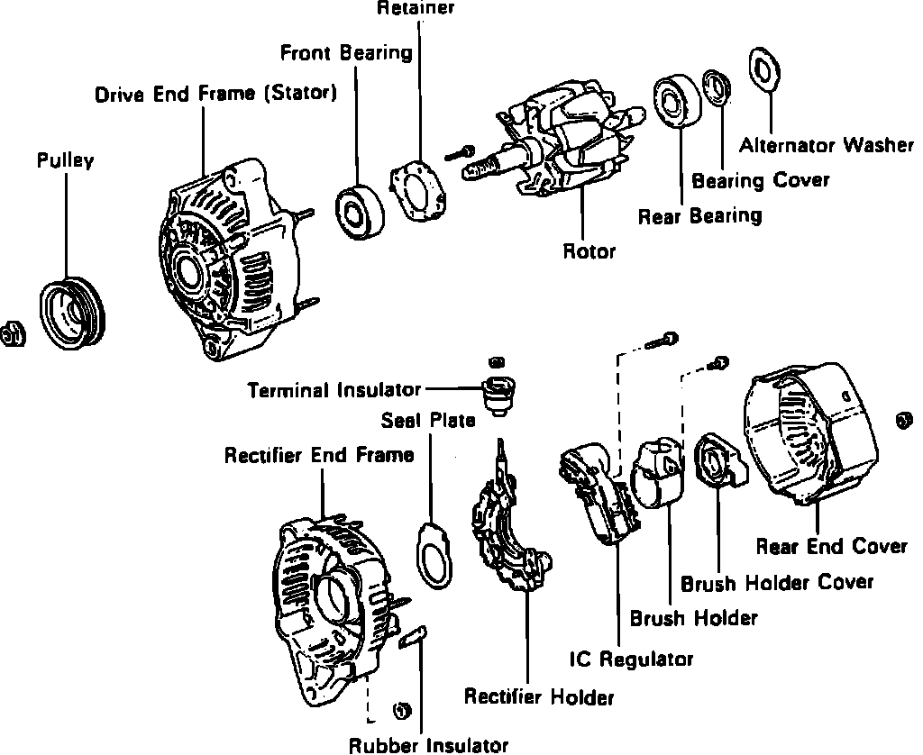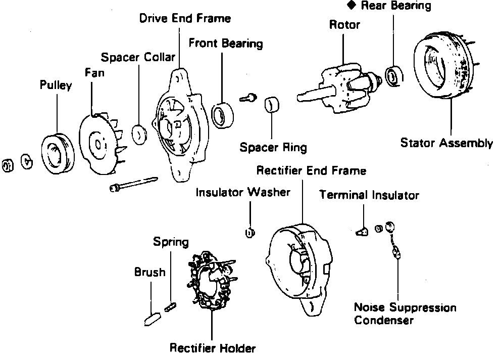 Fig. 1 Exploded View Of Alternator. Less IC Regulator: