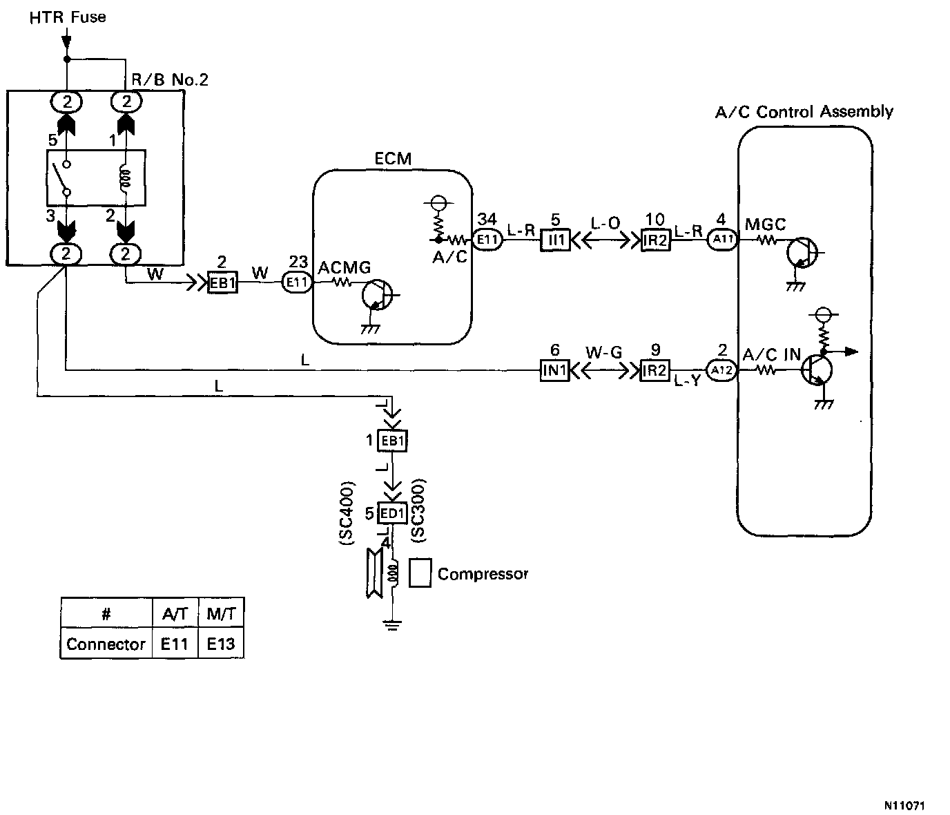 The air conditioning control assembly also monitors at terminal NC IN whether or not power is being supplied to the magnetic clutch.