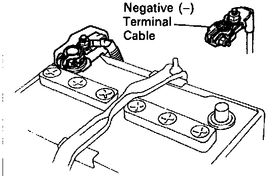 1. DISCONNECT NEGATIVE TERMINAL CABLE FROM BATTERY.
