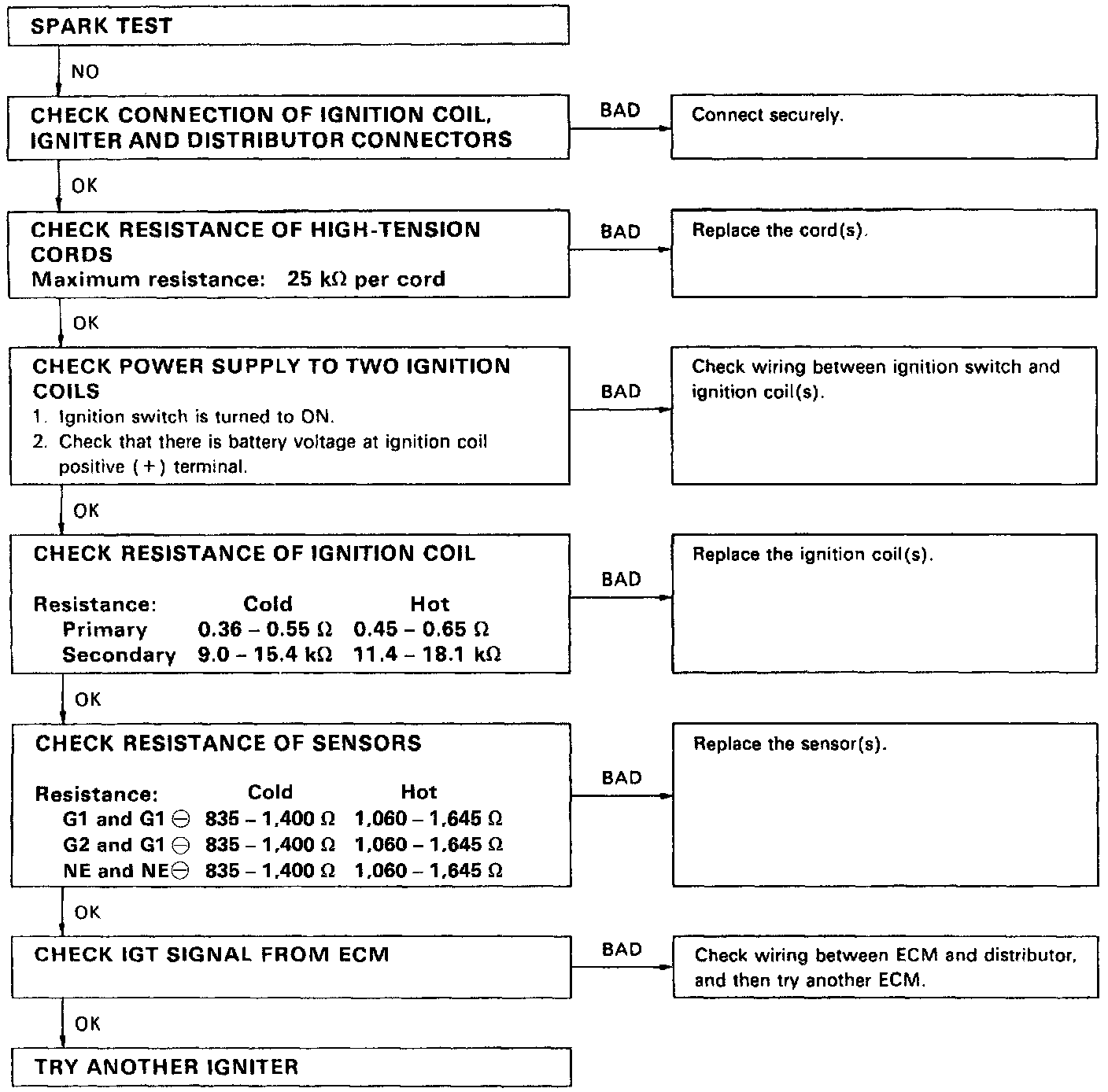 - If the spark does not occur, perform the test in the image above.