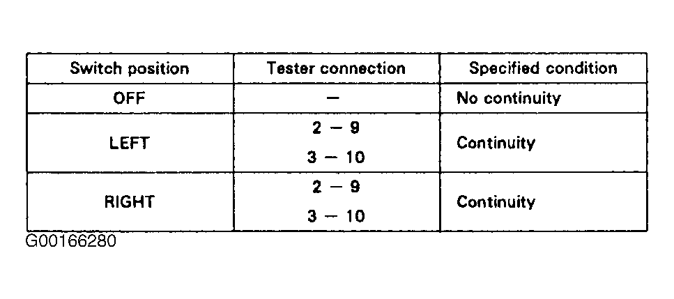 Inspect the switch continuity. See Fig 1-Fig 4 . If continuity is not as specified, replace the switch.