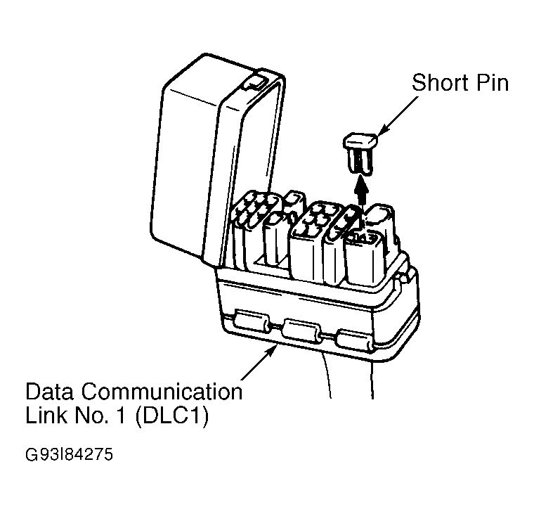 - Retrieve codes. If code(s) are stored, repair appropriate circuit. If no codes are stored, remove short pin from DLC1. See Figure. If light stays on, repair circuit between ABS warning light, DLC1 and ABS ECU.