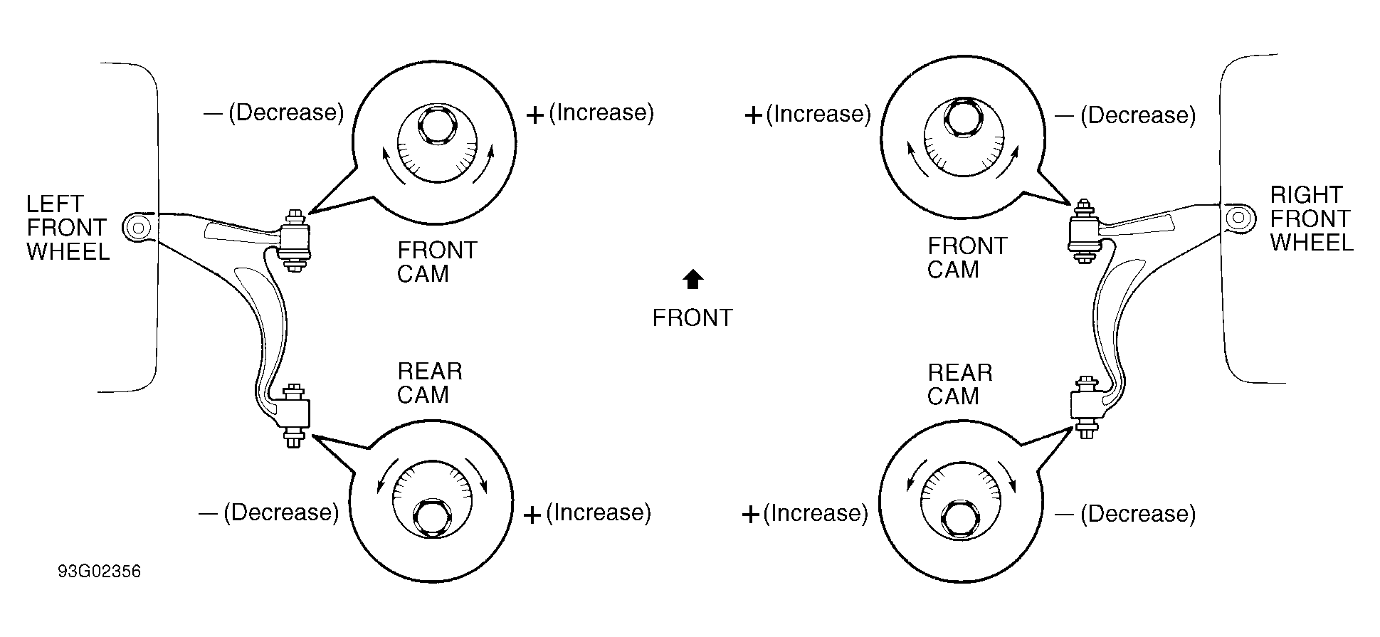 Rear suspension camber and toe-in are adjusted together.