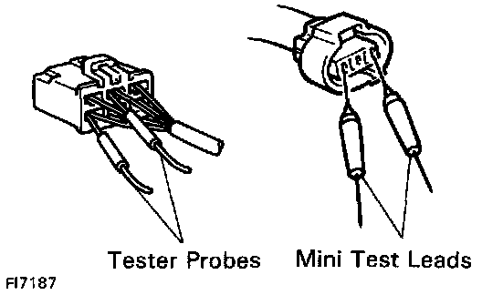 - When inserting tester probes into a connector, insert them from the rear of the connector. When necessary, use mini test leads.