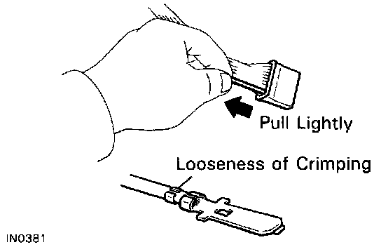 - Check crimped portions for looseness or damage and check if the terminals are secured in the lock position.
