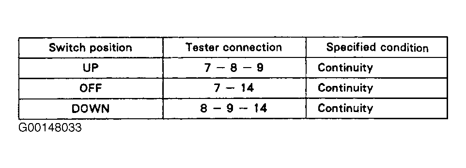 . If continuity is not as specified, replace power window master switch.