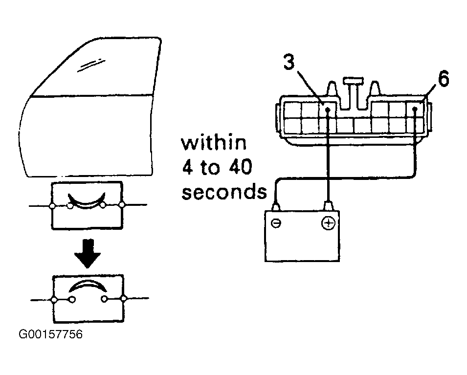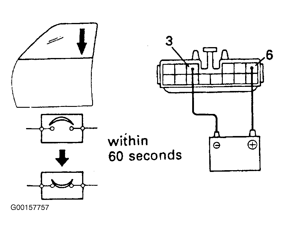 - Connect the positive (+) lead from the battery to terminal 3 and the negative (-) lead to terminal 6 on the wire harness side connector and raise the window to full closed position. See Fig 1.