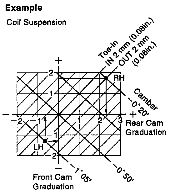 (b) As shown in the illustration, from the graph the amounts by which the front and/or rear cam are to be adjusted.
