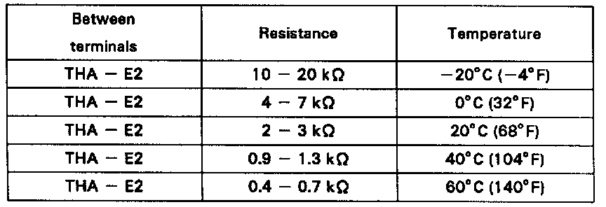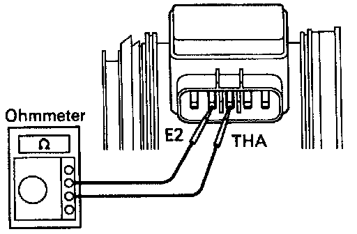 1. INSPECT MAF METER RESISTANCE.- Using an ohmmeter, measure the resistance between terminals THA and E2.