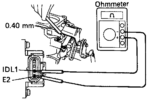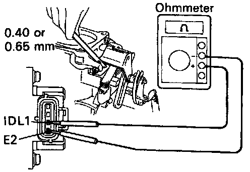 - Connect the test probe of an ohmmeter to the terminals IDL1 and E2 of the sensor.