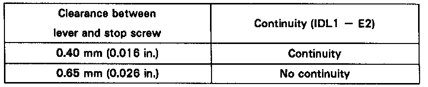 - Insert a 0.40 mm (0.016 in.) feeler gauge, between the throttle stop screw and stop lever.
