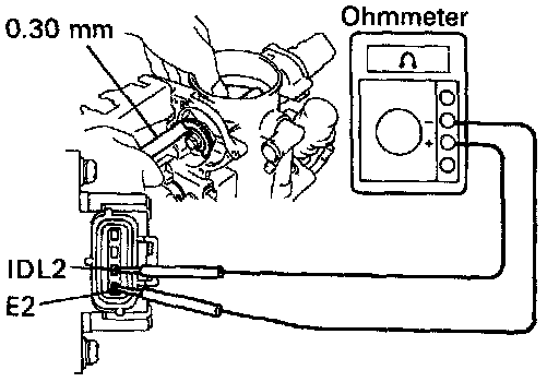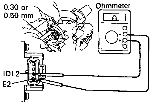 - Connect the test probe of an ohmmeter to the terminals IDL2 and E2 of the sensor.