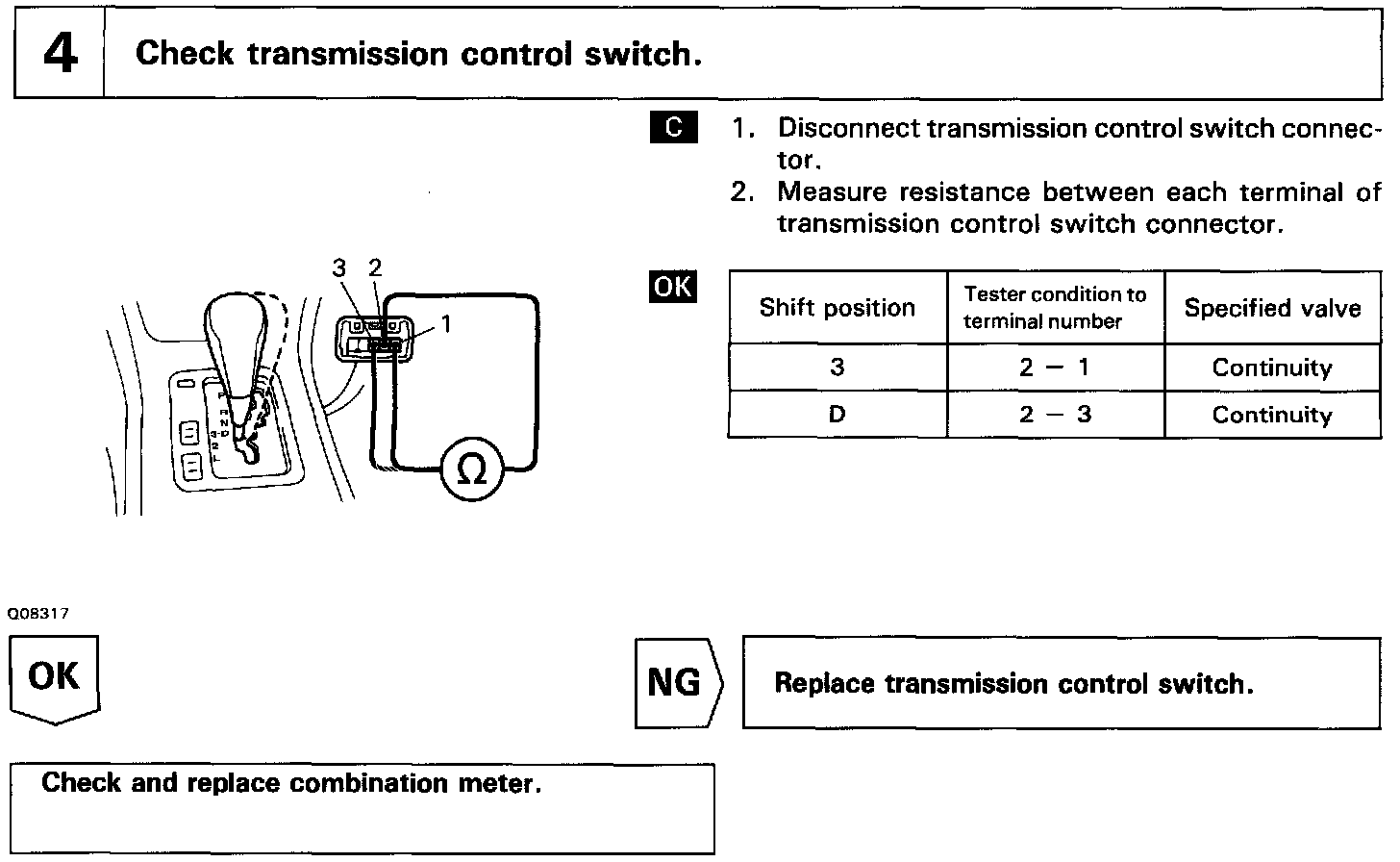 Home >> Lexus >> 1996 >> LS 400 V8-4.0L (1UZ-FE) >> Repair and Diagnosis >> Powertrain Management >> Computers and Control Systems >> Transmission Position Sensor/Switch >> Testing and Inspection