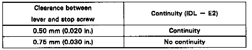 - Insert a 0.50 mm (0.020 in.) or 0.75 mm (0.030 in.) feeler gauge between the throttle stop screw and stop lever.