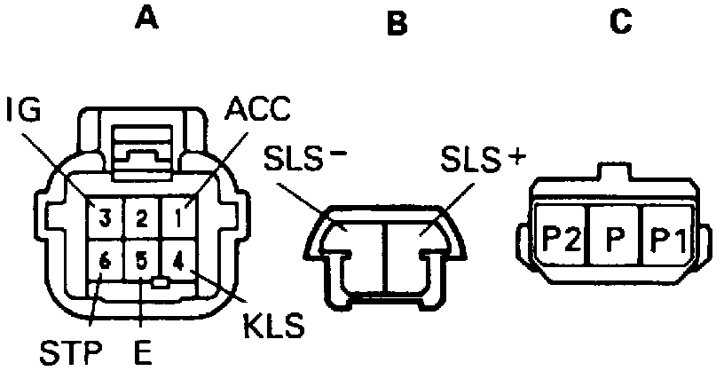 Fig. 3 Shift Lock ECU Terminal Identification.:
