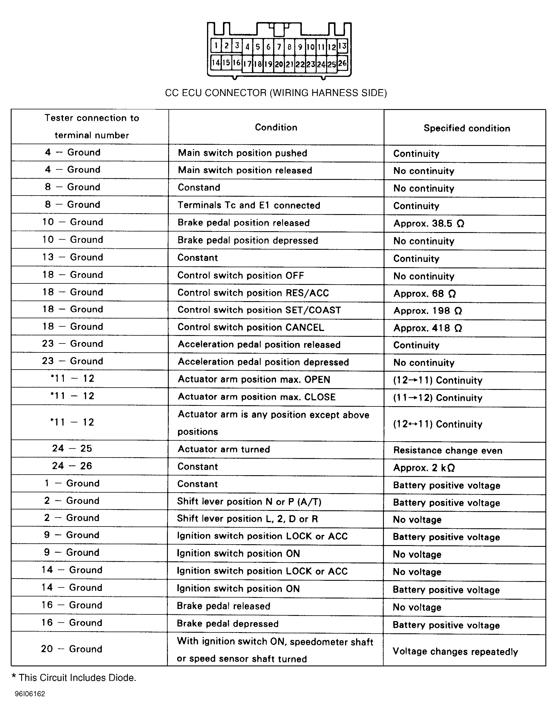. To help identify all other cruise control related connector terminals and wire colors, see