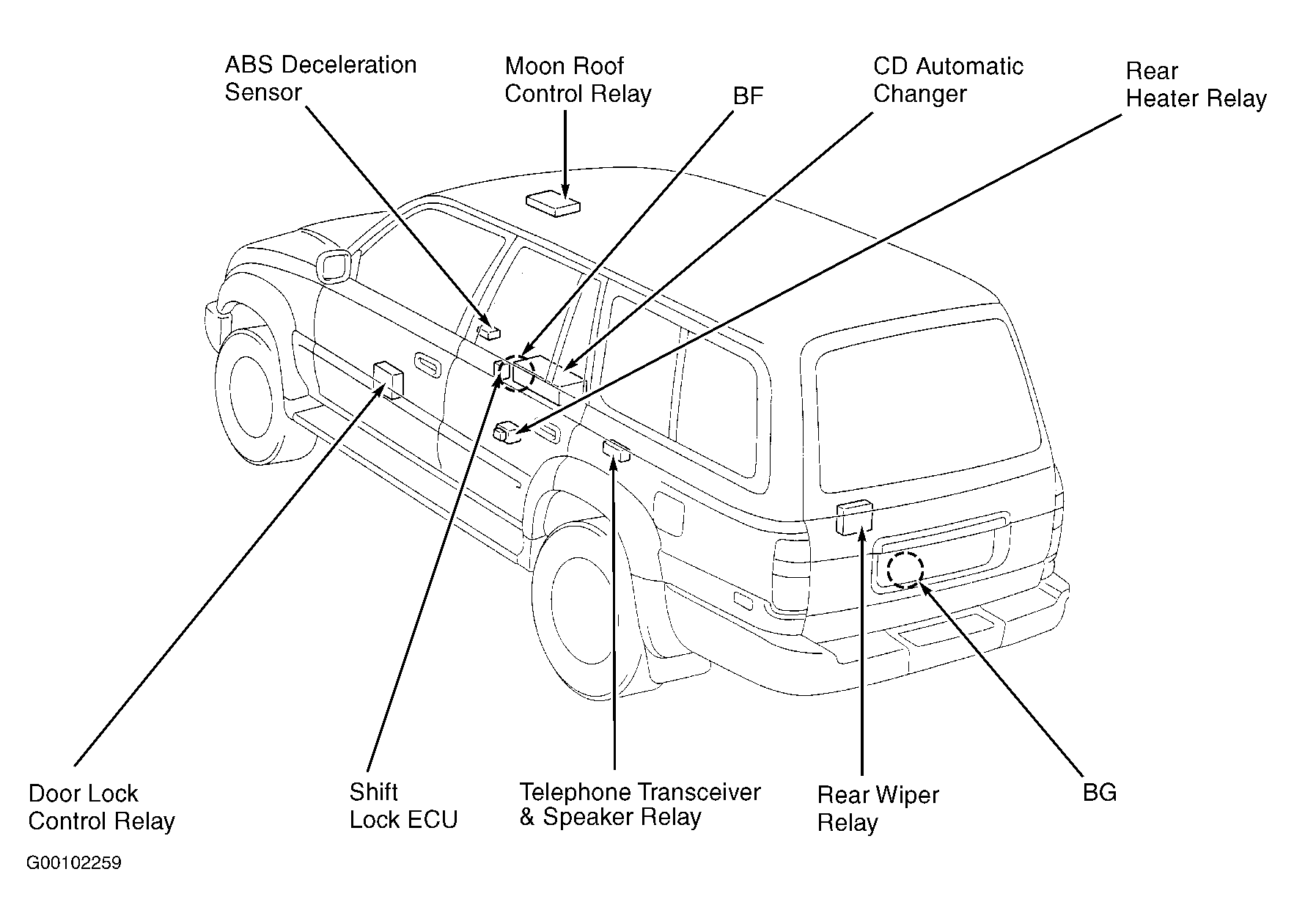 | Shift Lock ECU | Under center console, near gearshift lever. See Figure. |