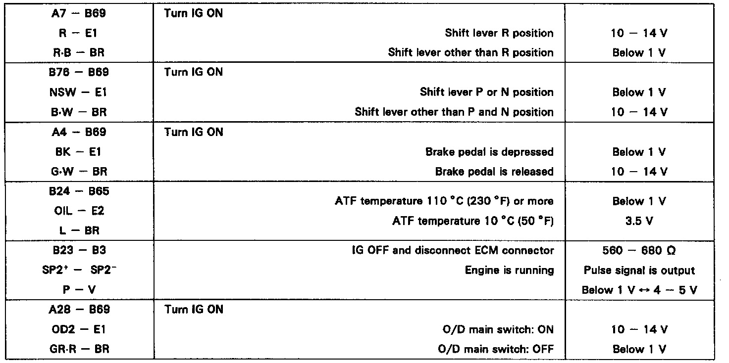 Pinout Values and Diagnostic Parameters