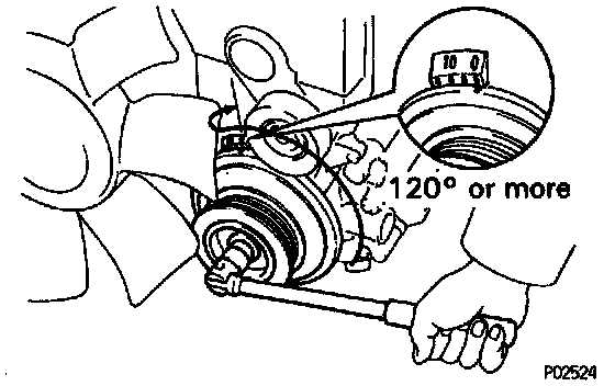 - Turn the crankshaft again approximately 10° to 40° clockwise so that the timing belt cover TDC mark and the crankshaft pulley TDC mark are aligned.