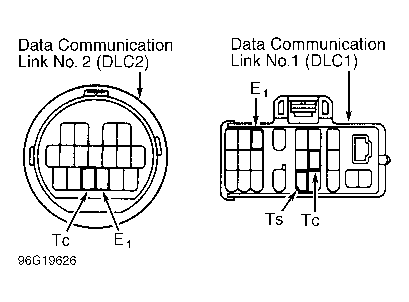 2. Drive vehicle at 28 MPH or greater for several seconds. Stop vehicle. Using another jumper wire, connect DLC1 connector terminals Tc and E1. There should now be 2 jumper wires. See Figure.