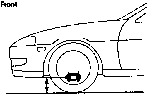 Measure from the ground to the center of the lower suspension arm front mounting bolt.
