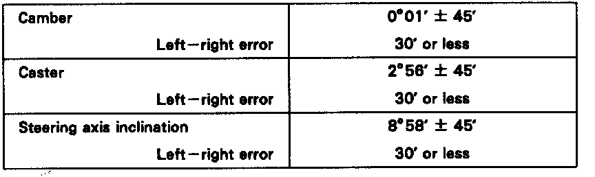 If the steering axis inclination is not as specified, after camber and caster have correctly adjusted. recheck the steering knuckle front wheel bearing or looseness.