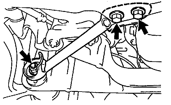 (b) Remove the nut, 2 bolts and front lower suspension arm bracket stay.