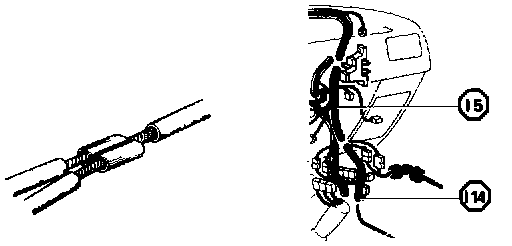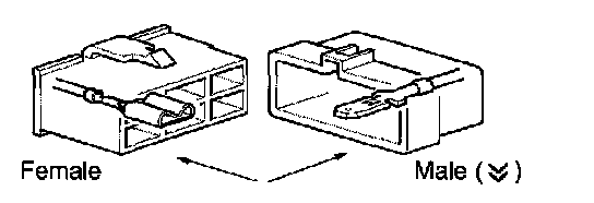 G : Indicates the wiring harness and wiring harness connector. The wiring harness with male terminal is shown with arrows (V V) Outside numerals are pin numbers.