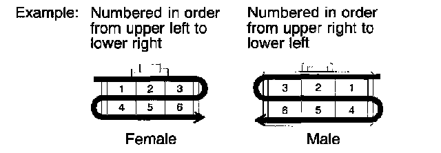 O : Indicates the pin number of the connector. The numbering system is different for female and male connectors.