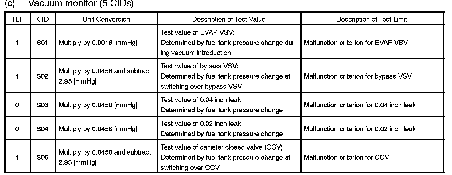 TID $02: EVAP (Vacuum Monitor (5 CIDs)):